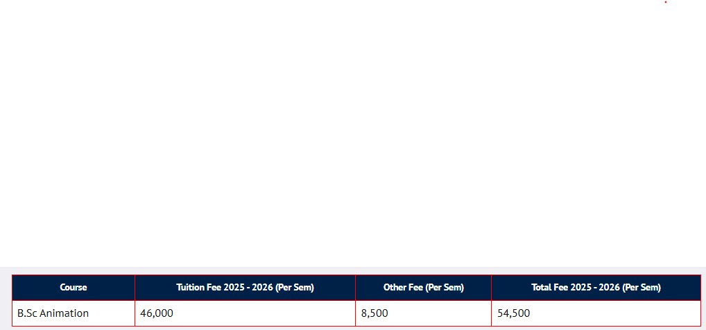 Earlier, B.Sc Animation fees at VISTAS Chennai was ₹ 3.24 Lakhs (in 2024) for the entire course duration. This shows a fee increase of ₹ 3,000 over the year.