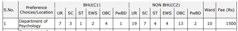 The postgraduate admission process at the university requires two visits for document verification and final admission, initiated by taking the Post Graduation Entrance Test (PET). Successful candidates are called for counseling, document verification, and subject selection, with updates provided on the registration portal. The psychology department at the women's college in BHU has an active faculty, though lacks specialized teachers for some courses. The postgraduate program costs 6,000 rupees over two years, excluding additional hostel fees of 3,450 rupees in the first year and 3,000 rupees monthly for meals.
