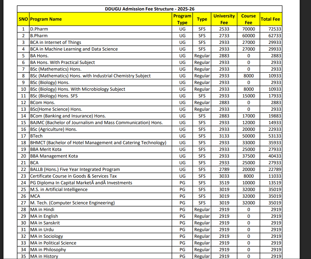 General category students receive about 35,000 INR, and SC/ST students receive around 43,000 INR, which can cover up to 90% of tuition fees. The university maintains a commitment to accessibility and inclusivity, reserving seats for SC/ST students and offering substantial financial support.