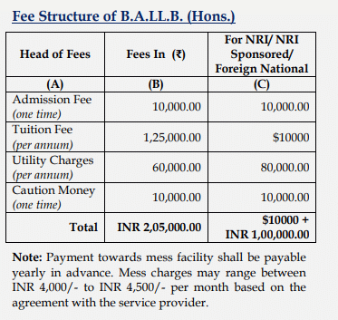 Earlier, BALLB {Hons.} fees at NLU Lucknow (RMLNLU) was ₹ 9.45 Lakhs (in 2025) for the entire course duration. This shows that the fee has remained unchanged since 2025.