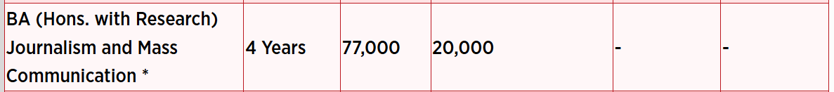 | Fees | Year 1 (in INR) | Year 2 (in INR) | Year 3 (in INR) | Year 4 (in INR) |