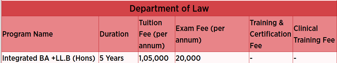 The annual tuition fee is approximately INR 115,000, with a total course fee of INR 565,000 for the BA LLB Hons. Integrated 5-Year Course; a 2% cashback is available for timely fee payments. Placement opportunities are robust, particularly for engineering and law students, with a reported 95% overall placement rate. Notable recruiters include TCS, Google, and Infosys, with the highest package reaching 42 lakh INR and an average package between 4-5 lakh INR.