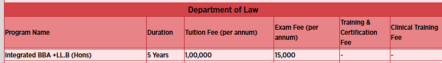 Admission at Galgotias University requires a rank of 60 in the LSAT, participation in the college's personal exam, a sports trial for scholarships, and the CLAT. The faculty is approachable and professional, providing excellent support. The academic structure includes three types of exams: Internal Assessments (25 marks), Mid Term Examinations (50 marks), and End Term Examinations (100 marks) for thorough evaluation. The law department's fees are lower than many other institutions, with an annual tuition fee of INR 100,000 and an examination fee of INR 10,000, totaling INR 550,000 for the entire course.