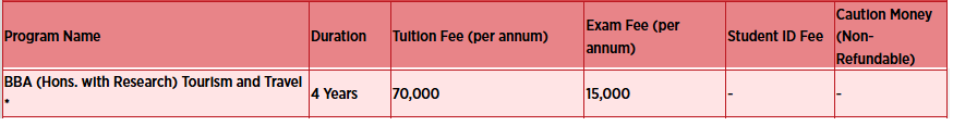 BBA (Hons.) Research Travel & Tourism at Galgotias University Greater Noida is a 4 Years Degree. The course is offered On Campus as a Full Time program. Galgotias University Greater Noida BBA (Hons.) Research Travel & Tourism First Year Fees is INR 93,000 for 2025.