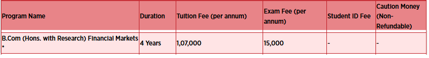 FEE STRUCTURE AS PER OFFICIAL WEBSITE