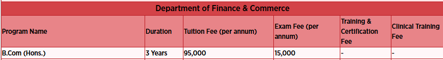 FEE STRUCTURE AS PER OFFICIAL WEBSITE