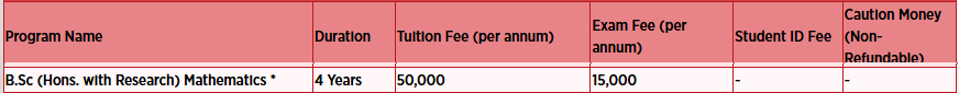FEE STRUCTURE AS PER OFFICIAL WEBSITE