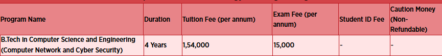 | Fees | Year 1 (in INR) | Year 2 (in INR) | Year 3 (in INR) | Year 4 (in INR) |