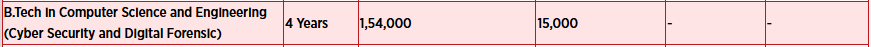 B.Tech Cyber Security and Digital Forensics at Galgotias University Greater Noida is a 4 Years Degree. The course is offered On Campus as a Full Time program. Galgotias University Greater Noida B.Tech Cyber Security and Digital Forensics First Year Fees is INR 1,77,000 for 2025.