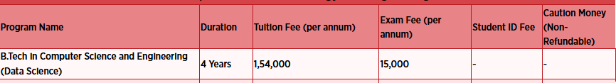 FEE STRUCTURE AS PER OFFICIAL WEBSITE