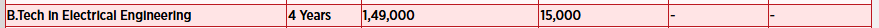 The course offers a Bachelor of Technology in core branches with an annual tuition fee of Rs. 1,59,000, which includes library and lab fees. Additional exam fees amount to Rs. 15,000, making the total estimated cost around Rs. 6,80,000, excluding books and other personal expenses. Students can request a deferred payment with approval from the dean and pro VC. The college provides a strong placement record, with major recruiters like Wipro, Infosys, Cognizant, Amazon, and others.
