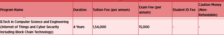 | Fees | Year 1 (in INR) | Year 2 (in INR) | Year 3 (in INR) | Year 4 (in INR) |