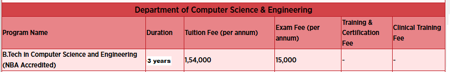FEE STRUCTURE AS PER OFFICIAL WEBSITE