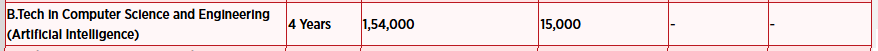 | Fees | Year 1 (in INR) | Year 2 (in INR) | Year 3 (in INR) | Year 4 (in INR) |