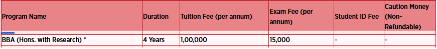 FEE STRUCTURE AS PER OFFICIAL WEBSITE