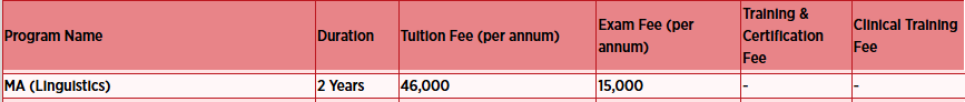 FEE STRUCTURE AS PER OFFICIAL WEBSITE