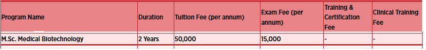 M.Sc Medical Biotechnology at Galgotias University Greater Noida is a 2 Years Degree. The course is offered On Campus as a Full Time program. Galgotias University Greater Noida M.Sc Medical Biotechnology First Year Fees is INR 73,000 for 2025.