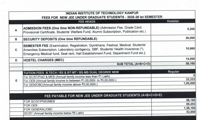Earlier, B.Tech + MBA fees at IIT Kanpur was ₹ 10.31 Lakhs (in 2020) for the entire course duration. This shows a fee increase of ₹ 1.1 Lakhs over the year.