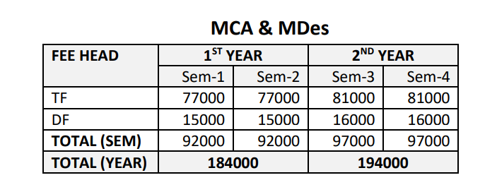 FEE STRUCTURE AS PER OFFICIAL WEBSITE