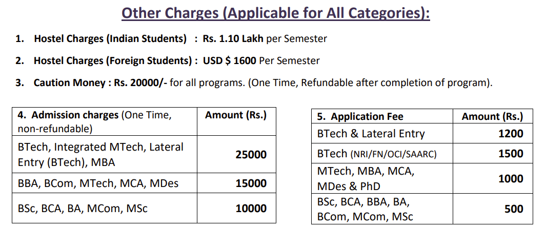 - This includes a total tuition fee of ₹ 2.97 Lakhs, Caution Fees of ₹ 20,000.