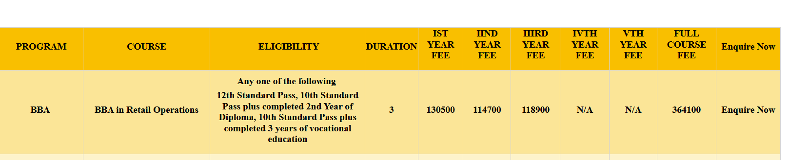 NIU Noida BBA Retail Operation fees 2025 is ₹ 3.64 Lakhs for the entire course duration.