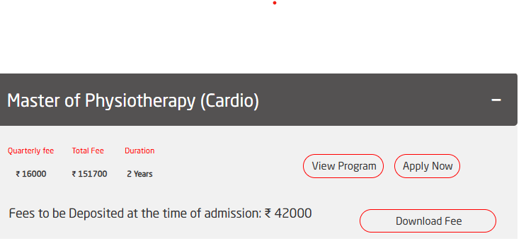 Santosh University Ghaziabad M.P.T Cardiothoracic & Pulmonary Disorders Fee has not been released yet. For reference you can check the previous year academic fees in the section below.