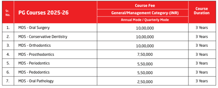 The minimum eligibility for admission to MDS Periodontics at Santosh University Ghaziabad is Graduation. Candidates are allotted seats based on NEET-MDS.