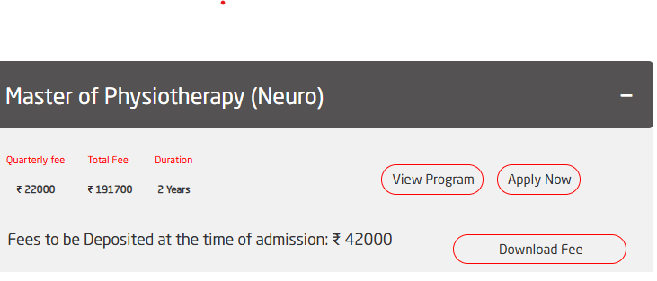 Santosh University Ghaziabad M.P.T Neurology Fee has not been released yet. For reference you can check the previous year academic fees in the section below.
