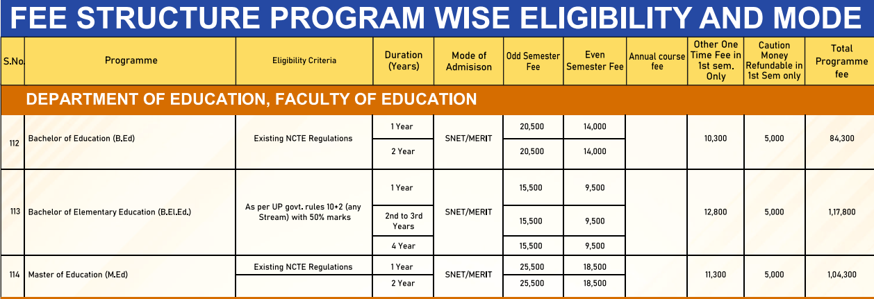 SVSU Meerut offers a total of 200 seats for B.Ed . Check SVSU Meerut Admission 2025