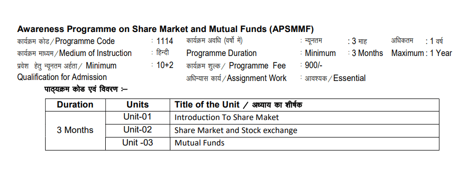 UPRTOU Certification Stock Market fees 2025 is ₹ 900 for the entire course duration.