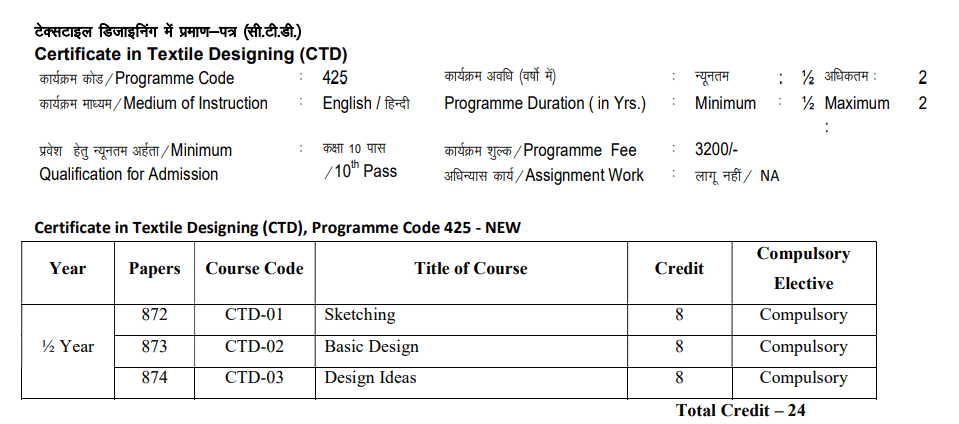 Earlier, Certification Textile Design fees at UPRTOU was ₹ 3,200 (in 2024) for the entire course duration. This shows that the fee has remained unchanged since 2024.