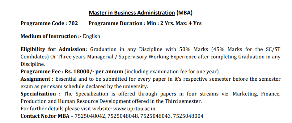 The minimum eligibility for admission to MBA Marketing at UPRTOU is Graduation with 50%.
