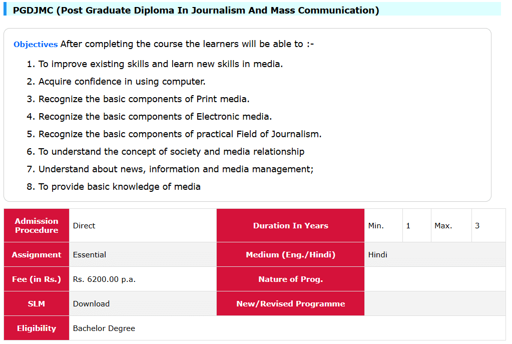 | Submission of Applications Dates for Admission [PG Diploma in Mass Communication] | Jun 26, 2025 - Oct 13, 2025 |