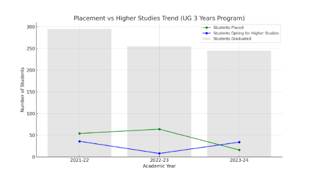 | Academic Year | No. of Students Graduating in Minimum Stipulated Time | No. of Students Placed | Placement Percentage | Median Salary | No. of Students Selected for Higher Studies |