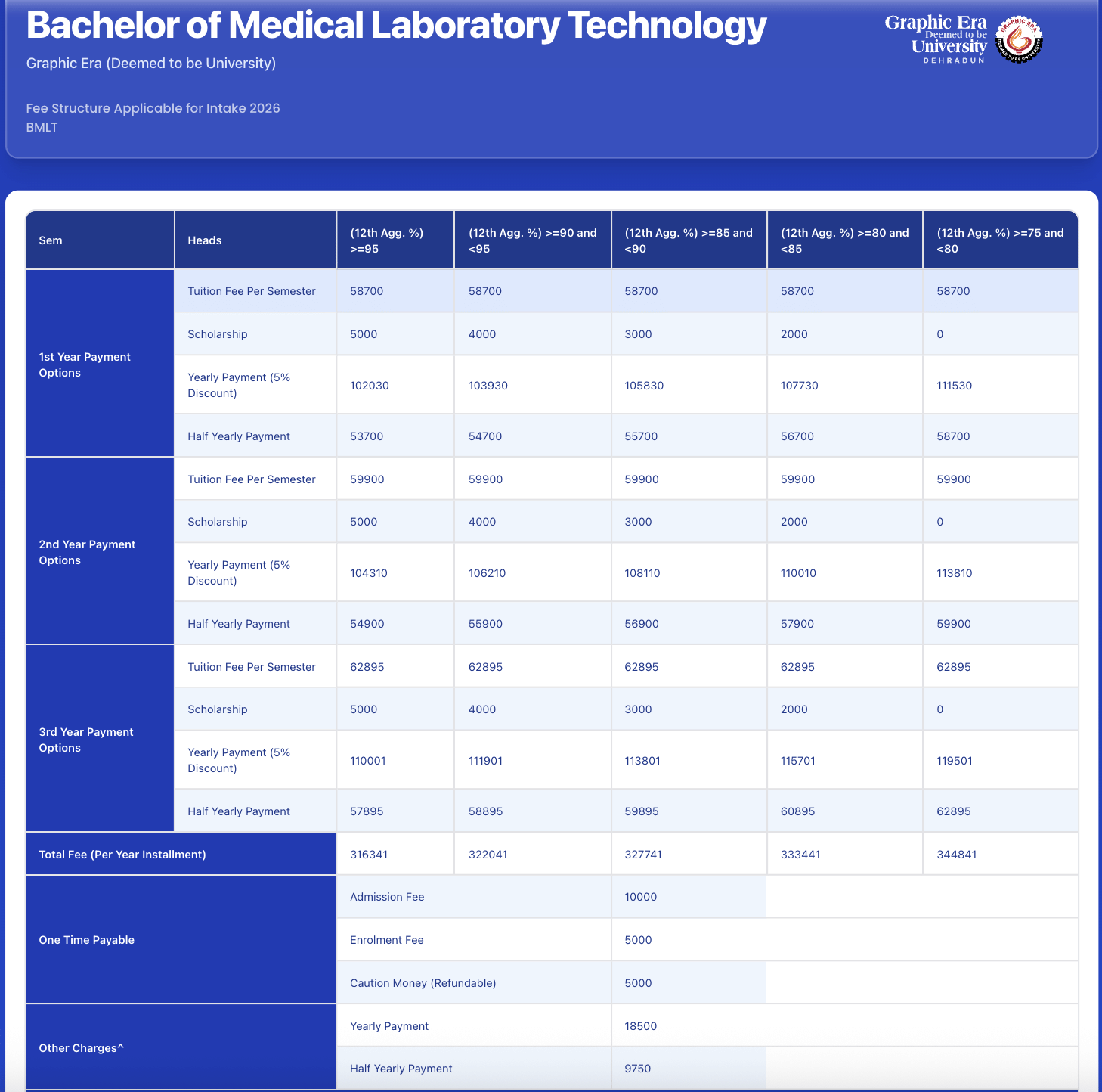 BMLT Fees at GEU covers a range of expenses, including tuition fee, course materials, and access to campus facilities.