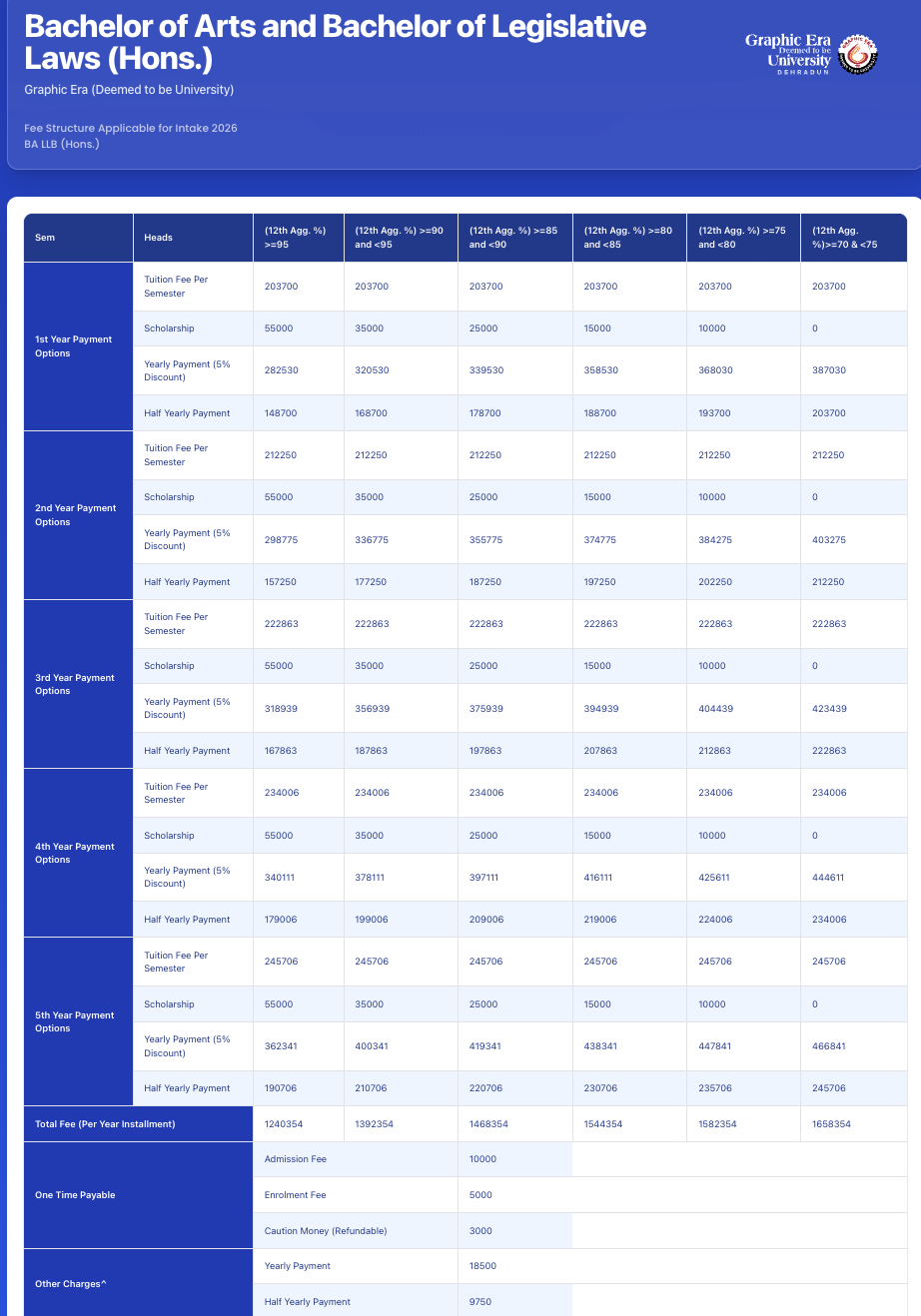 BALLB {Hons.} Fees at GEU covers a range of expenses, including tuition fee, course materials, and access to campus facilities.