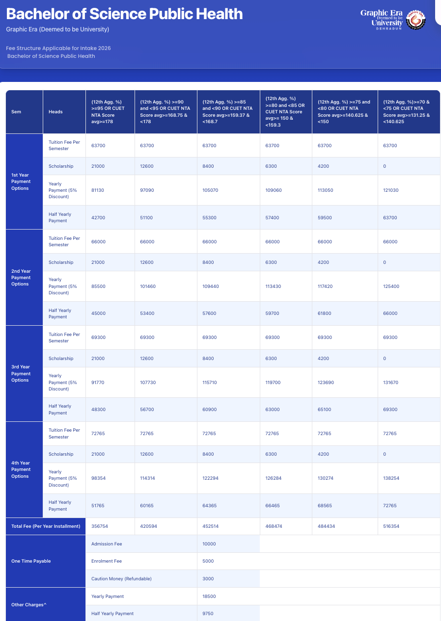 B.Sc Public Health Fees at GEU covers a range of expenses, including tuition fee, course materials, and access to campus facilities.