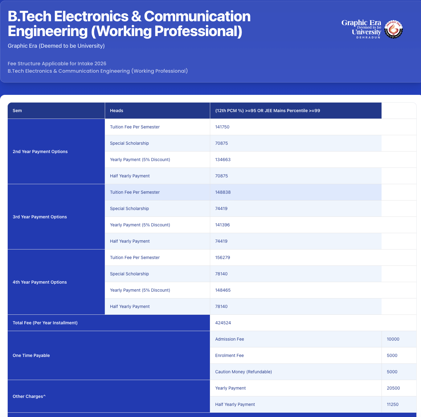 B.Tech Electrical Communication Engineering Fees at GEU covers a range of expenses, including tuition fee, course materials, and access to campus facilities.