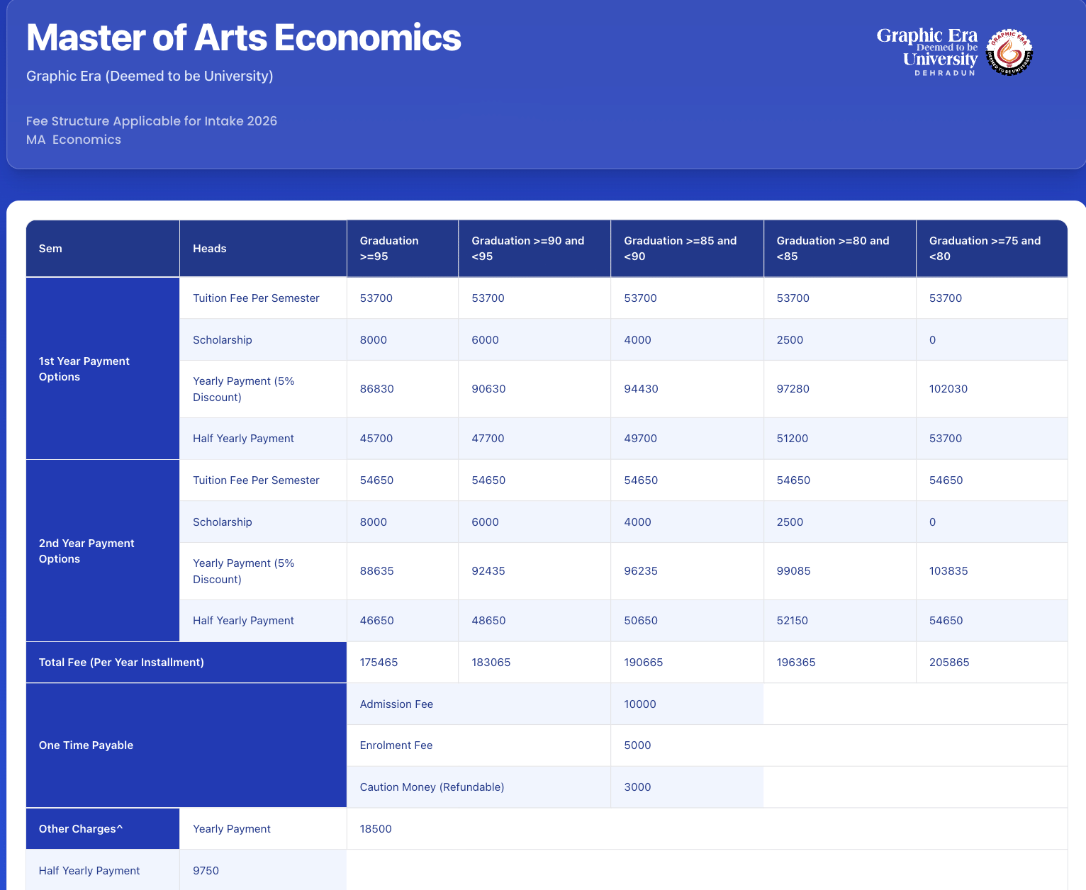 - The total fees for MA Economics is ₹ 2.53 Lakhs.