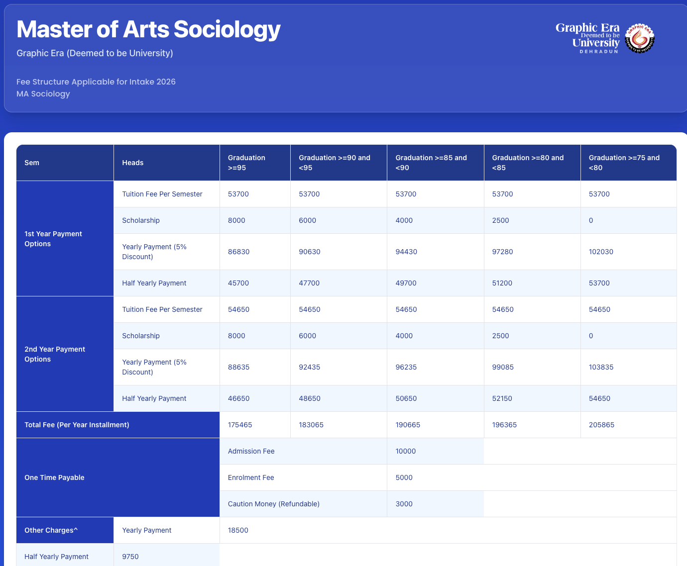 - The total fees for MA Sociology is ₹ 2.53 Lakhs.
