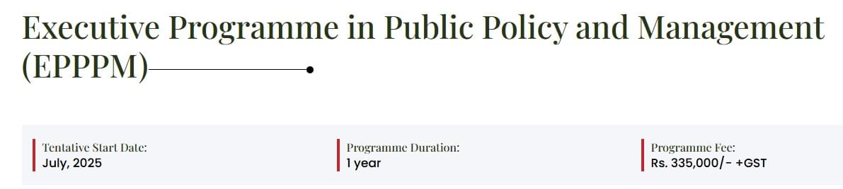 Executive Programme Public Policy and Management at IIM Calcutta is a 1 year , Part Time Degree program offered Online.