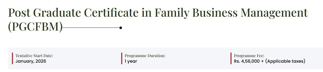 - The total fees for PG Certificate Family Business Management is ₹ 4.56 Lakhs.