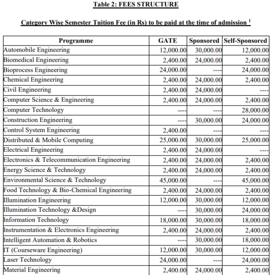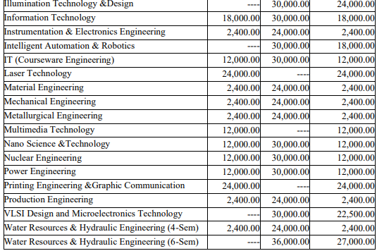 Admission to the M.Tech program at this university requires candidates to take an entrance test, with selections based on merit from test scores. Applicants must list their course preferences and take an admission test for each desired course. Scholarships are available for those with valid GATE scores. The M.Tech program is a 2-year course comprising 4 semesters, with a total fee of Rs. 96,000 (Rs. 24,000 per semester). Notably, the engineering courses are offered at an extremely affordable rate of Rs. 2,400 per semester, making the institution one of the least expensive for engineering education in India compared to private institutions and NITs.