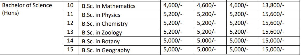 Earlier, B.Sc {Hons.} Physics fees at NSOU was ₹ 16,425 (in 2023) for the entire course duration. This shows a fee decrease of ₹ 825 over the year.