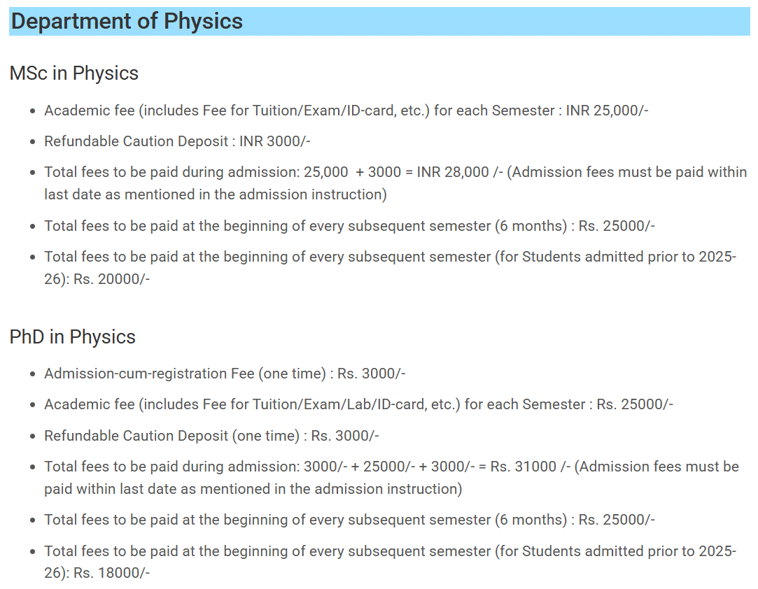 Ramakrishna Mission Vivekananda University Belur Ph.D Physics Fees