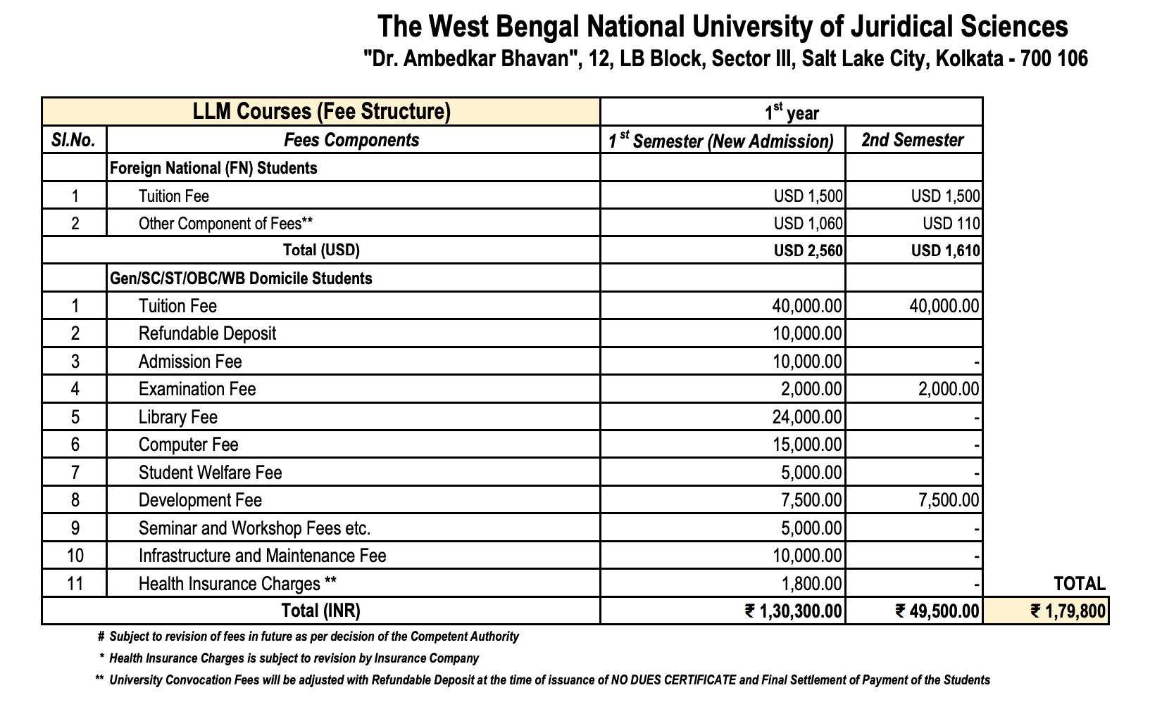 For students applying under the NRI quota for admission, the total course fee for L.L.M Technology Law at WBNUJS is ₹ 3.86 Lakhs.