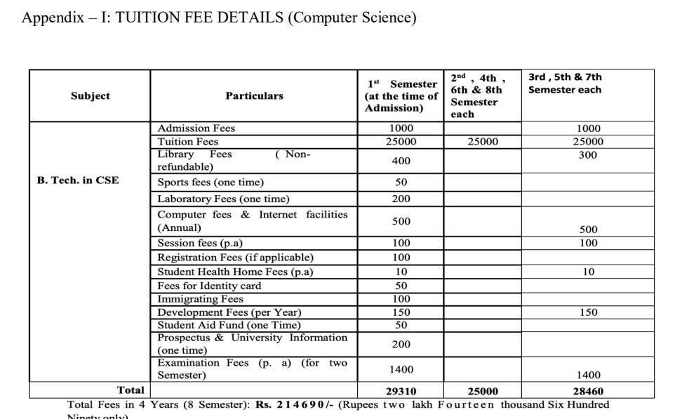The course features a reasonable faculty-student ratio, with a mix of permanent staff and 2-3 knowledgeable guest professors per subject. The total cost for four years of study is approximately Rs. 1,56,000. Eligible students can benefit from the West Bengal government's Swami Vivekananda Scholarship, which provides Rs. 60,000 annually. To qualify, students must enroll within two years of completing their 12th board exams and maintain at least 60% marks, though lower scholarships are possible for those who don't meet these criteria.
