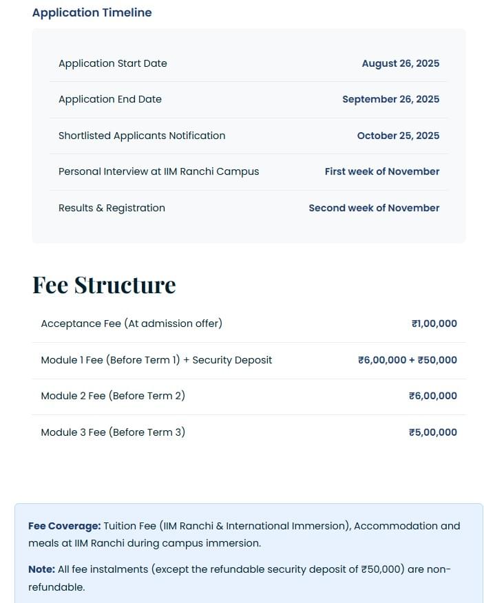 - IIM Ranchi Hostel Fee is ₹ 1.2 Lakhs.