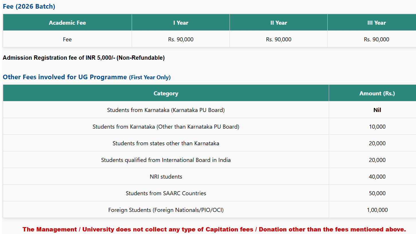 Students must maintain an internship diary, reviewed in the final year. The first-year fee is Rs. 70,000, while the second and third years are Rs. 80,000 each, along with additional semester fees. Various scholarships are available, including the Jayantian Achievement, Talent, and Upliftment Scholarships.