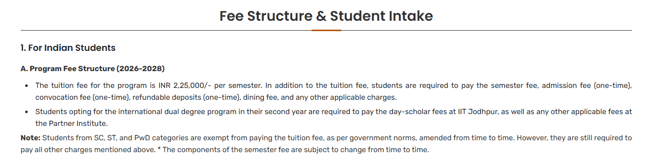 Earlier, MBA Fintech fees at IIT Jodhpur was ₹ 8.95 Lakhs (in 2024) for the entire course duration. This shows that the fee has remained unchanged since 2024.